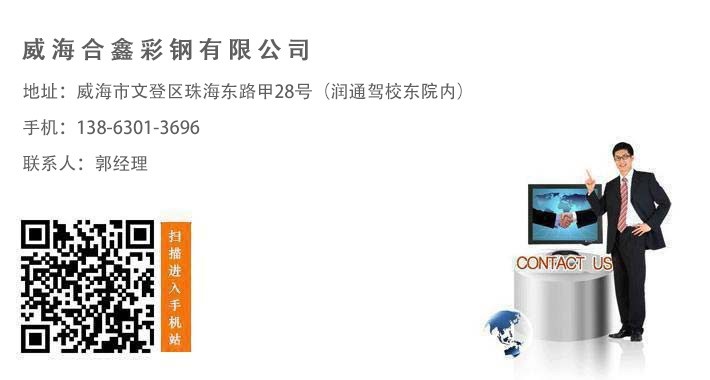威海合鑫彩鋼有限公司 威海市文登區(qū)珠海東路甲28號(hào)(潤(rùn)通駕校東院內(nèi)) 手機(jī):13863013696 聯(lián)系人:郭經(jīng)理